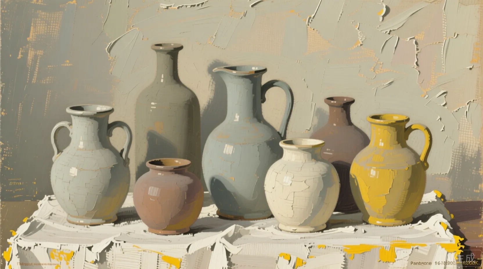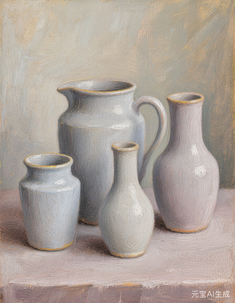 为解构乔治·莫兰迪“平凡即永恒”的静物美学,在数字领域复现“灰尘的光晕”,每处笔触都是“存在之轻”,我们基于艺廊云美学大数据特别生成AI提示词: