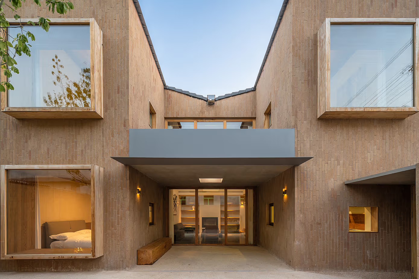 Beijing’s “Mother’s Home” (CPLUS, 2023) redefines the spirit of siheyuan (courtyard houses). Under a V-shaped roof, three functional zones unfold in a “品” formation: the eastern kitchen always smells of firewood, where elders steam buns while grandchildren bake bread at the island counter. The central courtyard features heated bluestone slabs—warming feet in winter and transforming into an open-air cinema in summer.