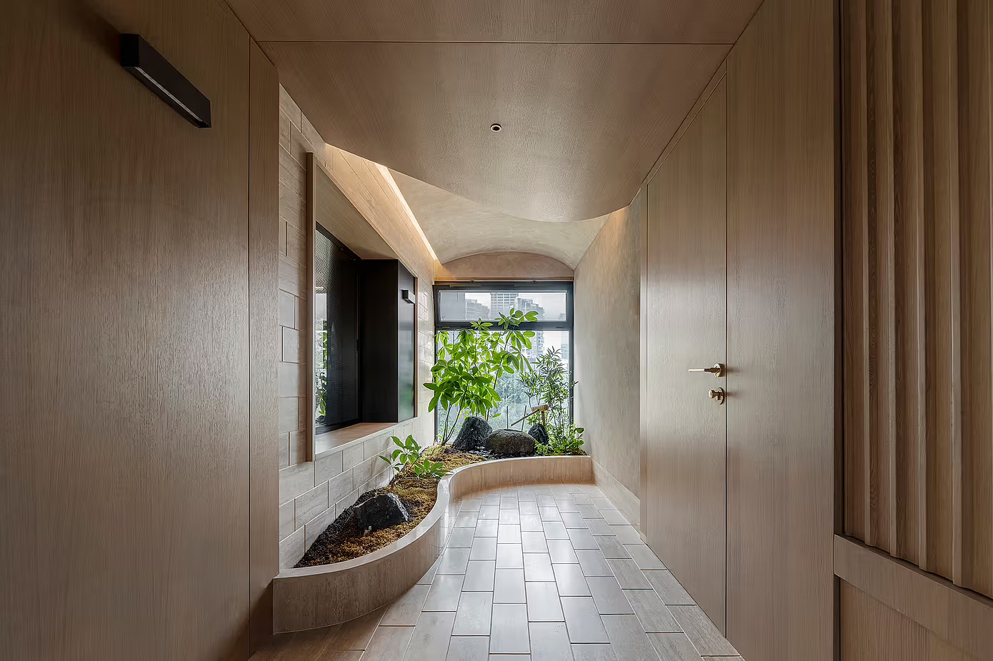 The curved wooden ceiling intentionally retains knots, with parents explaining: “Trees grow stronger where they’re wounded.” The balcony pond nurtures river snails; weekly cleanups become a family competition to spot eggs, offering biology lessons no textbook could match.
