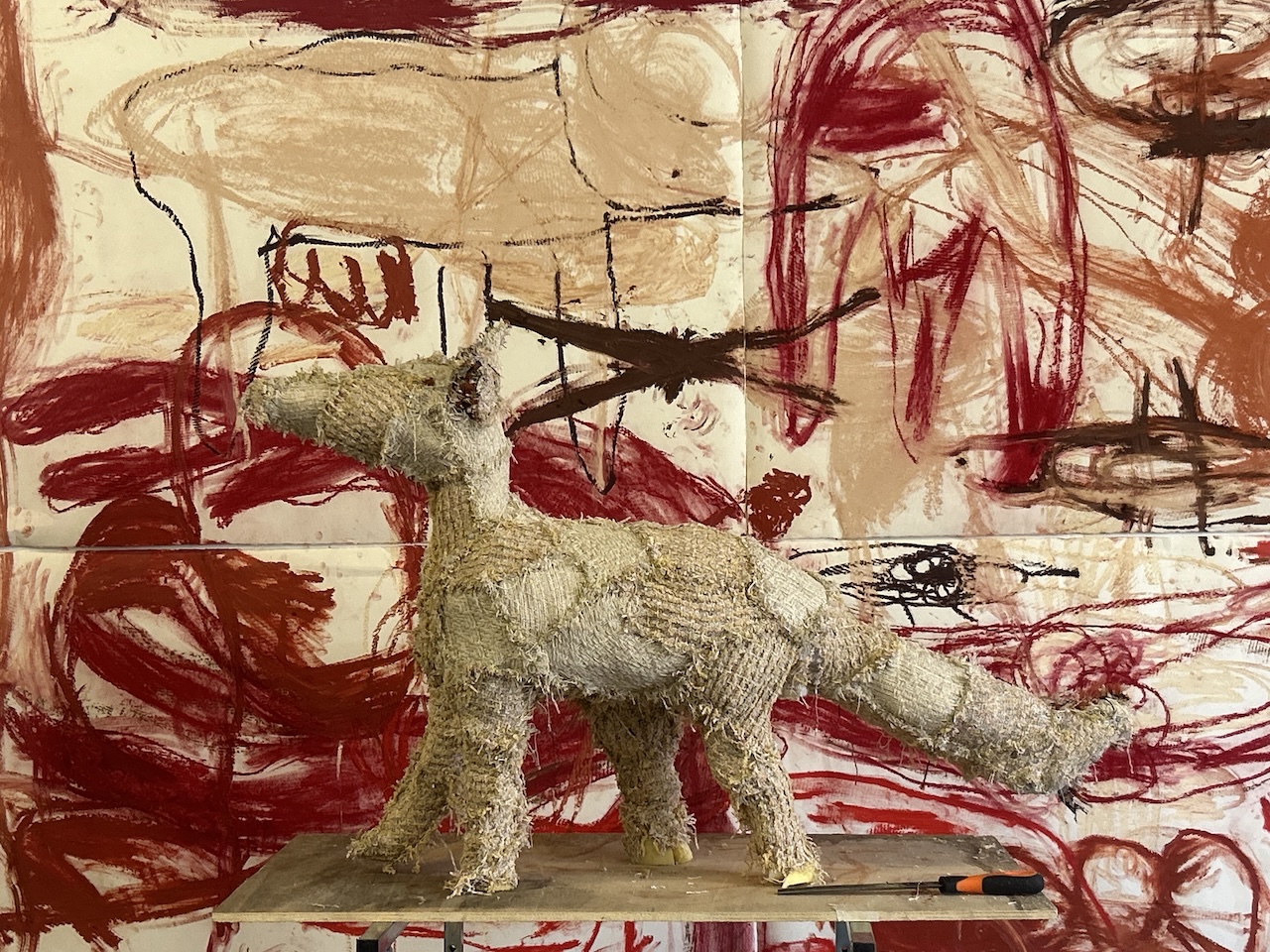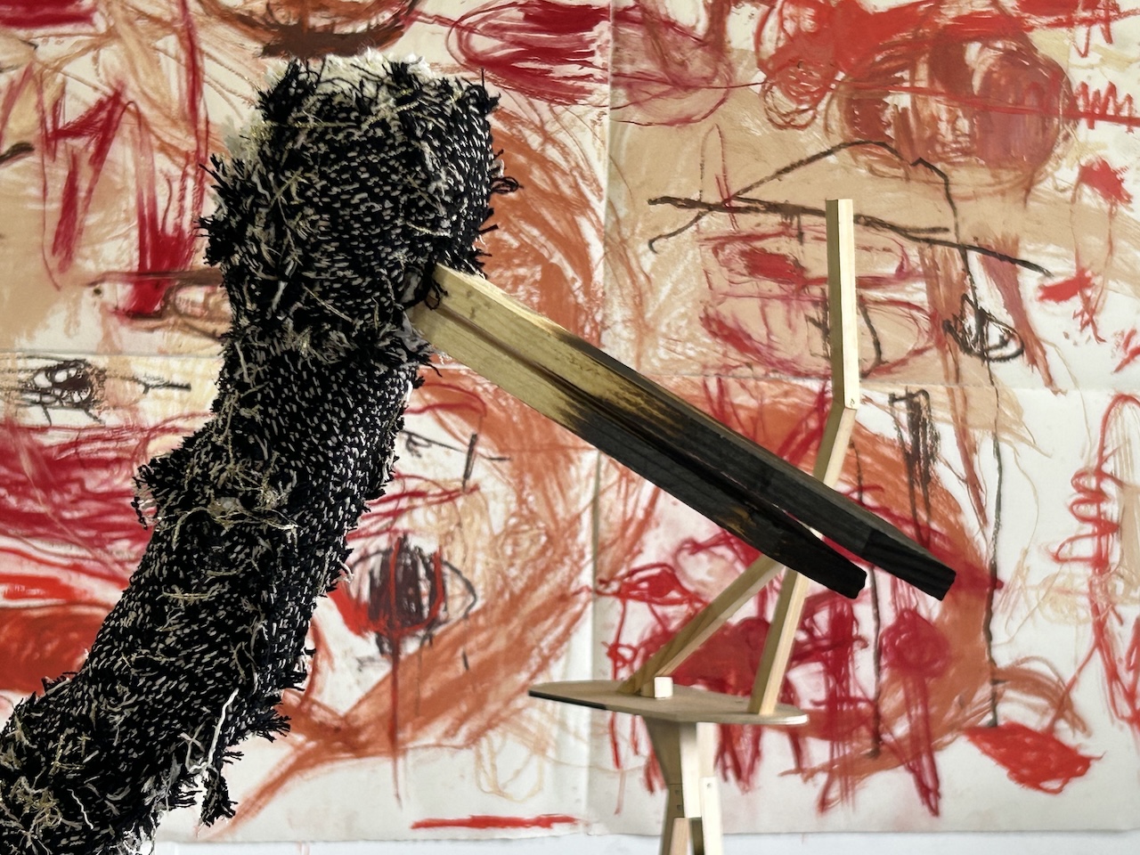 Julian Farade: I try to work with them, to give meaning on the side, if I can put it that way. For me, sculpture is about twisting, creating knots, and making links. I use what I can work with my hands. I don’t think much about cultural “genes”. I choose a material for the pleasure it gives me, what it does to the eye, for example velvet or satin.
